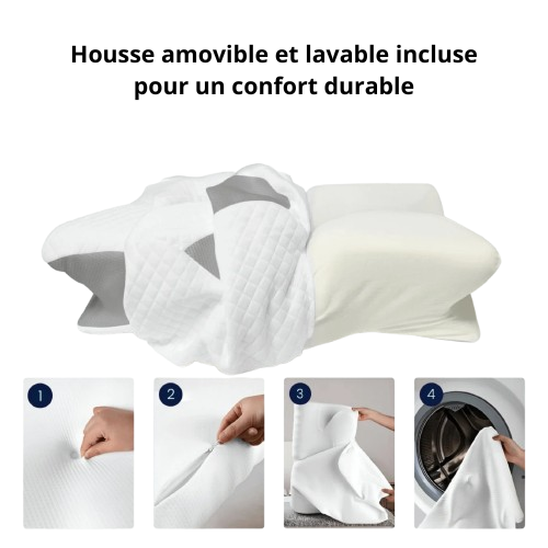 L'oreiller ne passe pas en machine, mais sa housse est amovible et lavable en machine.
